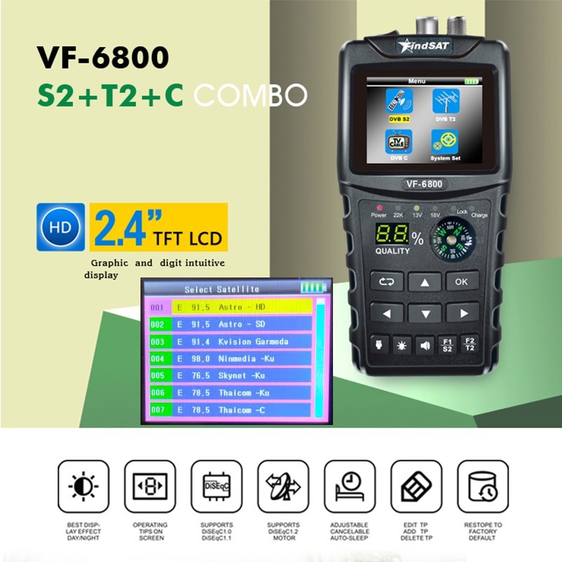 VF 6800 DVB-S/T/S2/T2 Digital Satellite Finder Signal Meter Satellite Dish Finder | Shopee Malaysia
