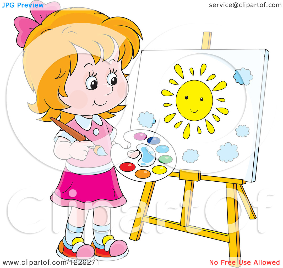 Little Girl Painting A Portrait Cartoon Clipart Vector - FriendlyStock